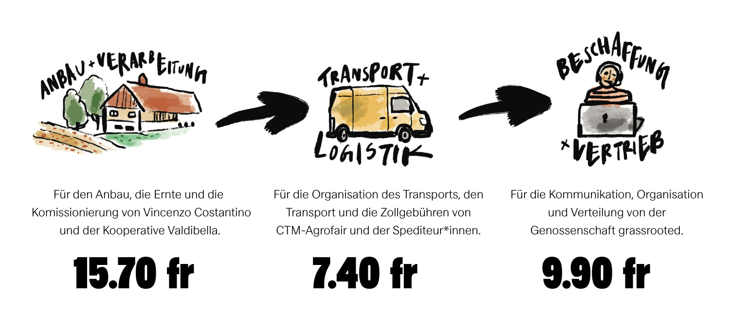 Die Kooperative Valdibella und verwenden das «Addio Pizzo» Label. Damit deklarieren sie, dass sie keine Schutzgelder an kriminelle Organisationen zahlen.