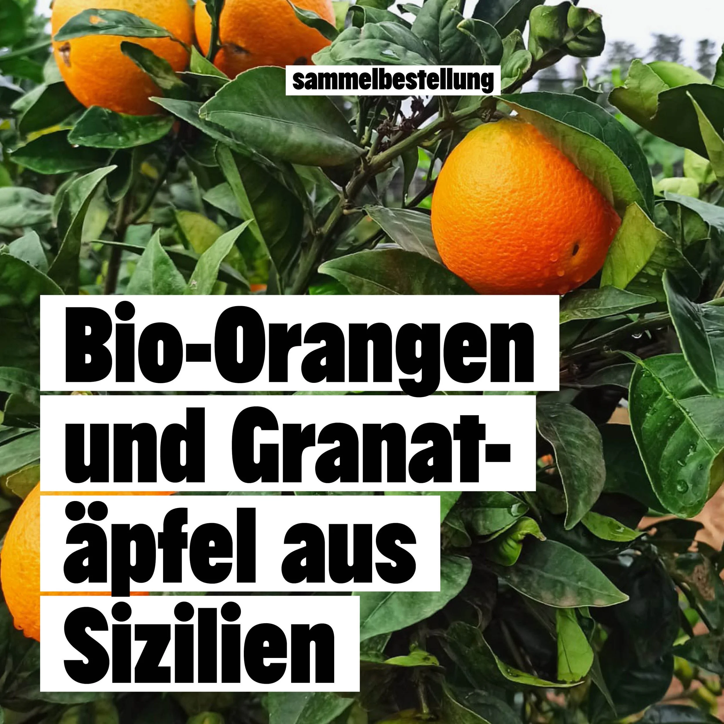 Bestell jetzt für 26 Franken eine Kiste mit 8kg Bio-Orangen und/oder für 21 Franken eine Kiste mit 5kg Bio-Granatäpfeln?